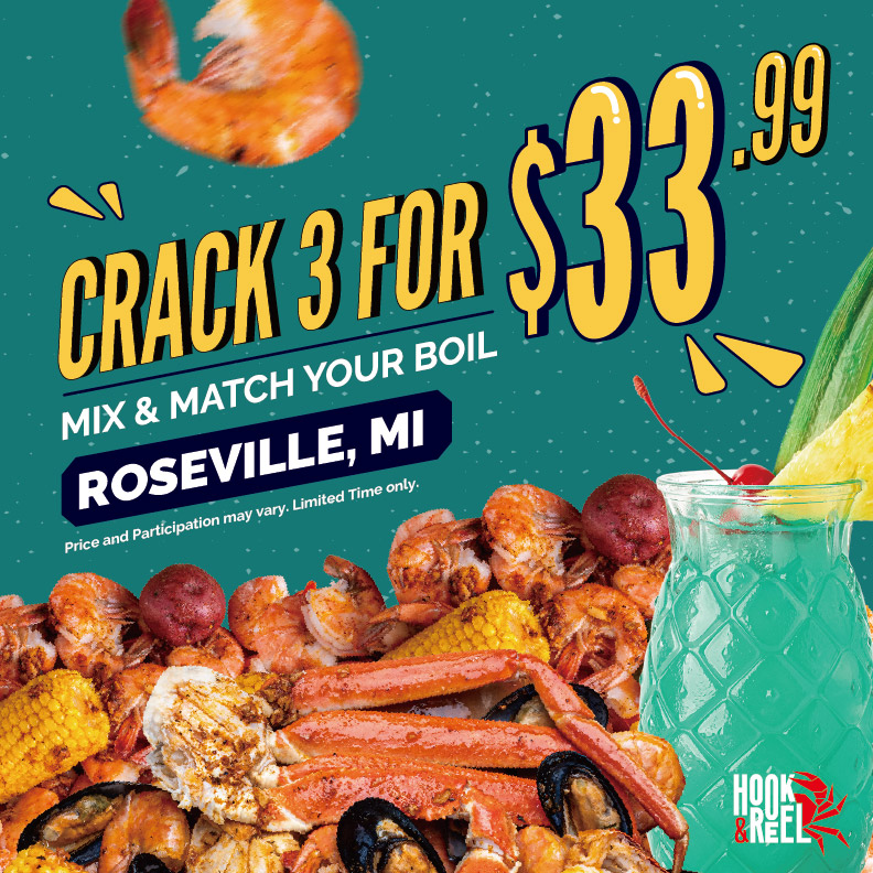 Locations Roseville, MI 30901 Gratiot Ave.Roseville, MI 48066 Hours Of Operation MON – THU: 11:30AM – 10PMFRI – SAT: 11:30AM – 11PMSUN: 12PM – 10PM (586) 585-9065 Order Now Order Catering Dine-In Menu Boil Combo Special Become a Reel One View Menu View Menu View Menu View Menu